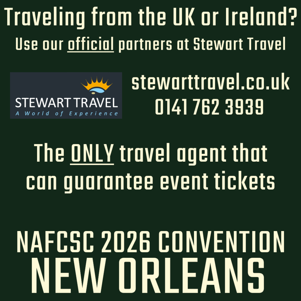Stewart Travel is the official Ireland and UK travel partner of the 2026 Convention. They are the only party that can guarantee event tickets for overseas visitors. We highly suggest you book your travel through them at stewarttravel.co.uk. You can also reach them at 0141 762 3939.